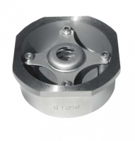 The check valve is made of stainless steel and is designed to be clamped between flanges. Rated up to PN40. Sealing options: metallic, EPDM, or FKM, with